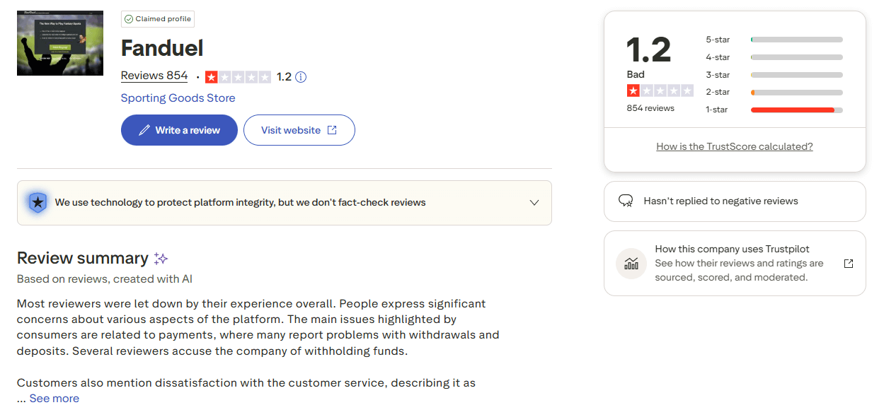 External review sites have started to take clear positions too, with one long form write up describing Predicts as “one of the most ambitious and credible prediction market projects” and another highlighting how quickly the app could bring event contracts into the mainstream if execution stays strong. Trustpilot feedback for the broader FanDuel brand is way more negative, and the complaints tend to focus on questionable payout mechanics by the operator.