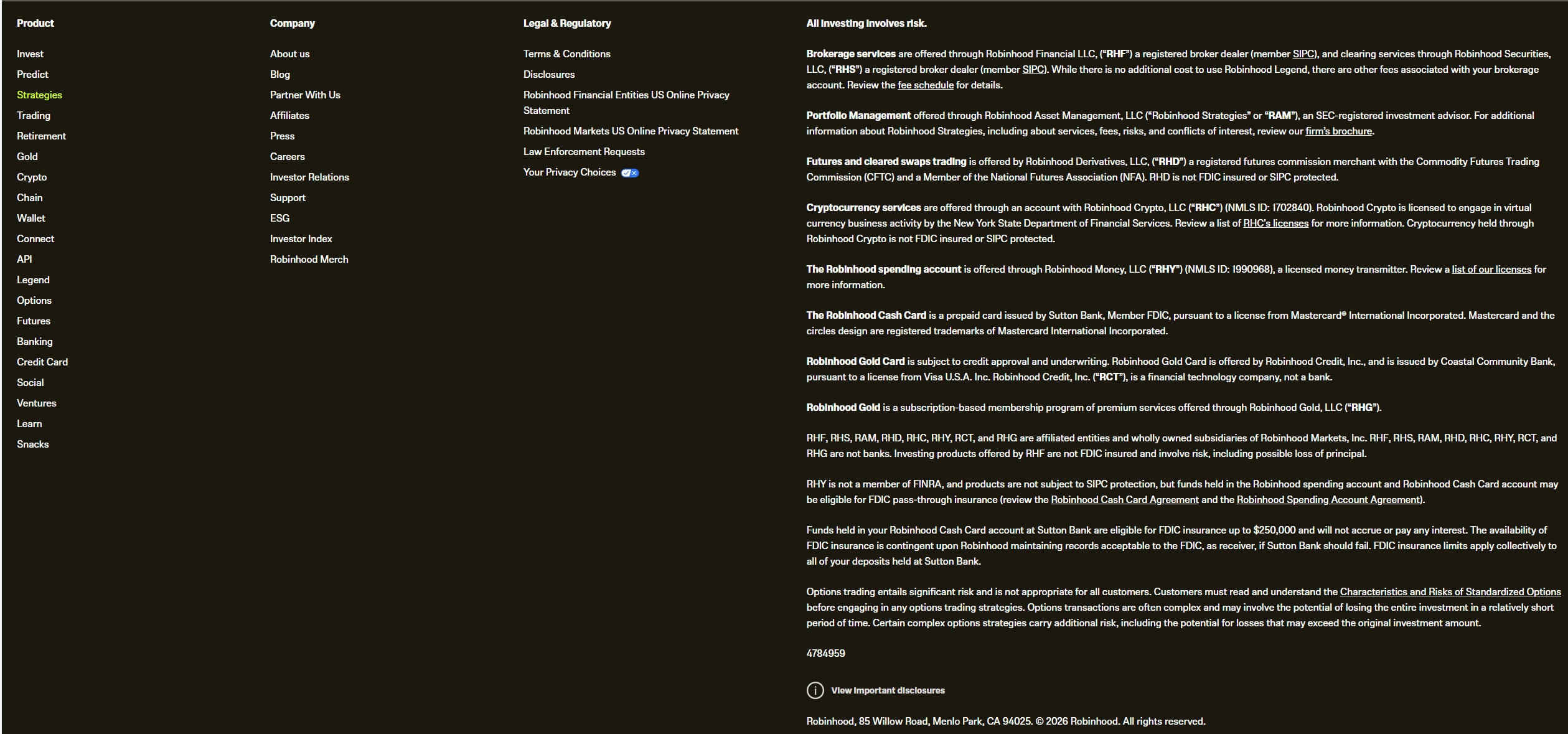 Robinhood prediction markets benefit from dual-layer regulation. First, Robinhood itself is a well-established, publicly traded company (NASDAQ: HOOD) subject to SEC oversight and financial reporting requirements. Second, the prediction market contracts are offered through Kalshi's CFTC-regulated exchange, which means they follow defined settlement rules, clearing infrastructure, and market integrity controls.