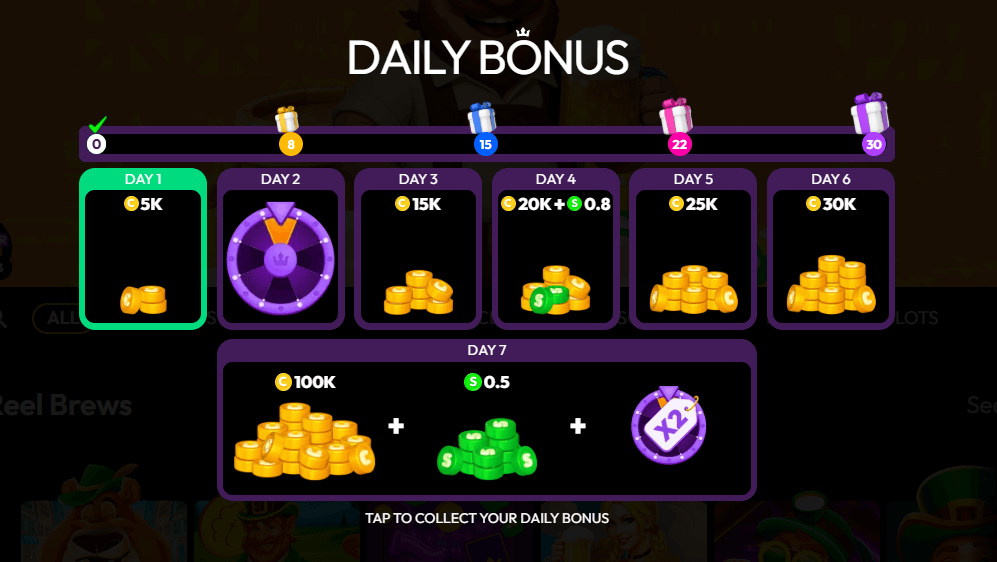 - Daily Login / Streak Bonus: Rewards grow if you log in consecutively — small Crown Coins and SC bonus increments.