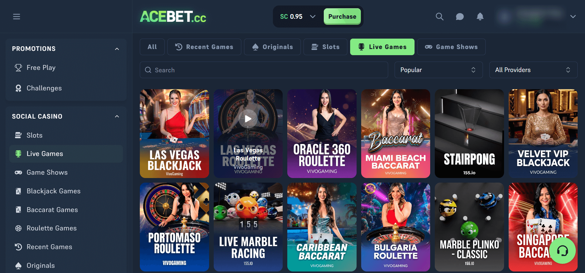 Acebet Originals deliver first-person virtual table games and arcade options, though the simplistic graphics and basic gameplay feel dated compared to main library content. For players seeking more table game variety, Sweet Sweeps offers greater variety.