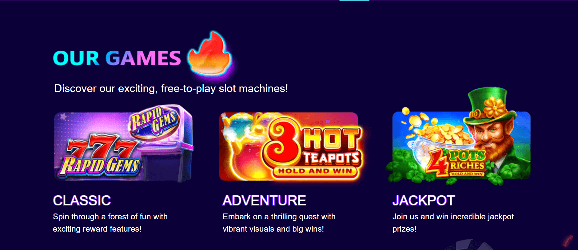 - Slots: 400+ titles spanning classic 3-reel, video slots, and jackpot games