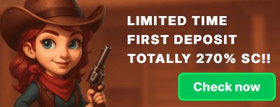 | First deposit bonus | Headline â270%ââstyle multiplier on total first Sweeps Coin deposit. | Bonus SC subject to promotional play and sweep rules; details not clearly summarised in the lobby. | Available on first deposit only. | Valid on sweeps-eligible slot titles. |
