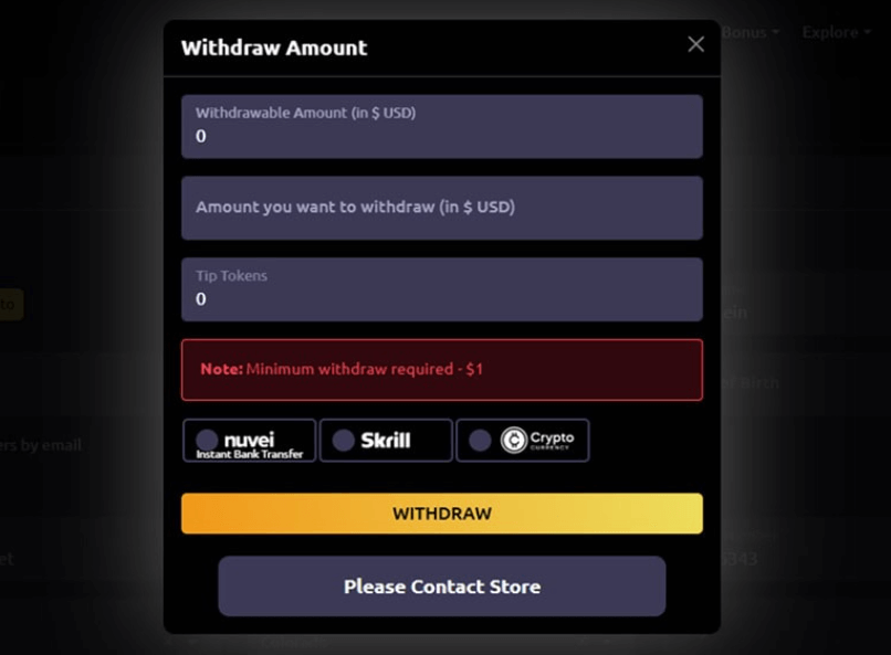 - Redemption Options: Nuvei instant bank transfer, Skrill and crypto withdrawals, subject to eligibility and successful KYC.
