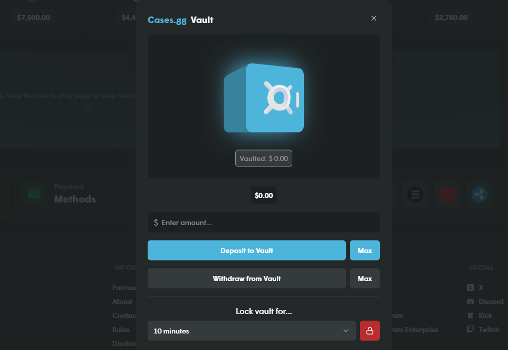 Our testing suggests crypto withdrawals are usually processed within 24 hours once KYC and wagering requirements are satisfied, which is competitive with many leading sweeps brands. The vault feature lets you park balance and lock it for set periods, which is handy if you want to protect a portion of winnings from impulse reâspins.