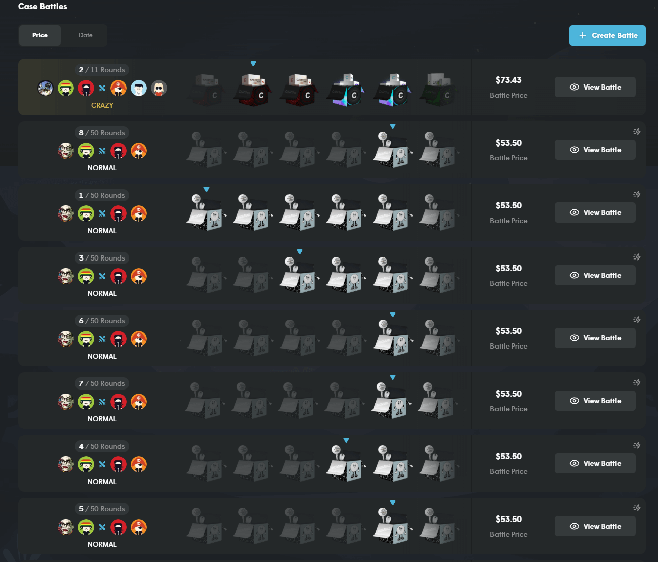 - Case battles: PvP competitions where 2â4+ players open the same series of boxes, and the highest total value or lowest in âcrazy modeâ scoops the lot.