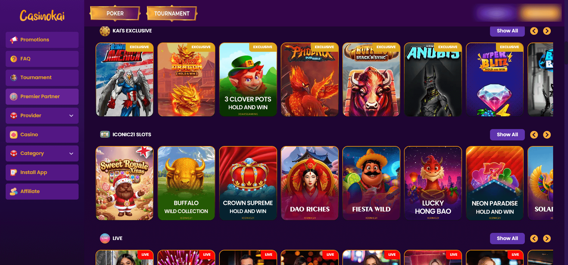 CasinoKai sweepstakes casino positions itself as a fresh entrant in the competitive sweeps casino landscape with a massive 2,700+ game library that immediately caught my attention during testing. What sets this platform apart is the impressive diversity of game providers and the inclusion of live poker tournaments, a rarity in the sweepstakes space. However, my experience revealed a mixed bag, while the sheer volume of games and low $50 redemption threshold show promise, the platform struggles with underwhelming daily bonuses, questionable provider partnerships, and vague redemption policies that raise concerns for a non-monetized operation.