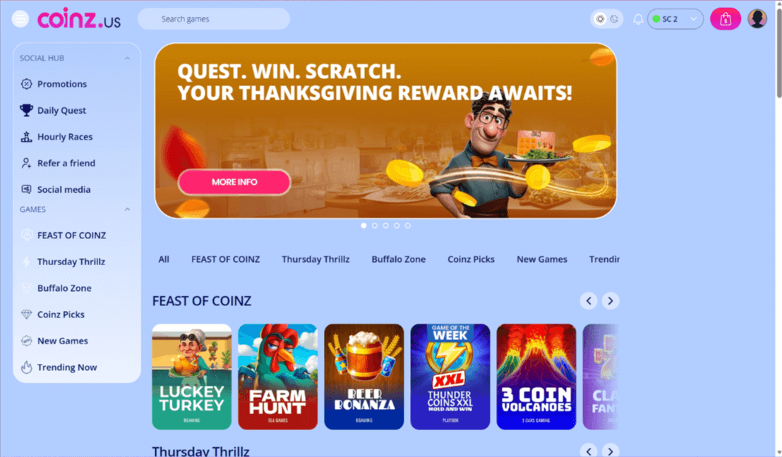 My overall impression after grinding through quests, trying every category, and pushing a few Sweeps Coins toward redemption is that Coinz.us is a confident but still maturing platform. It nails the fun factor with lively slots, an unexpectedly strong social live casino, and constant drip feed bonuses, but it does not yet have the multi year refinement or deep feature stack of some market leaders.