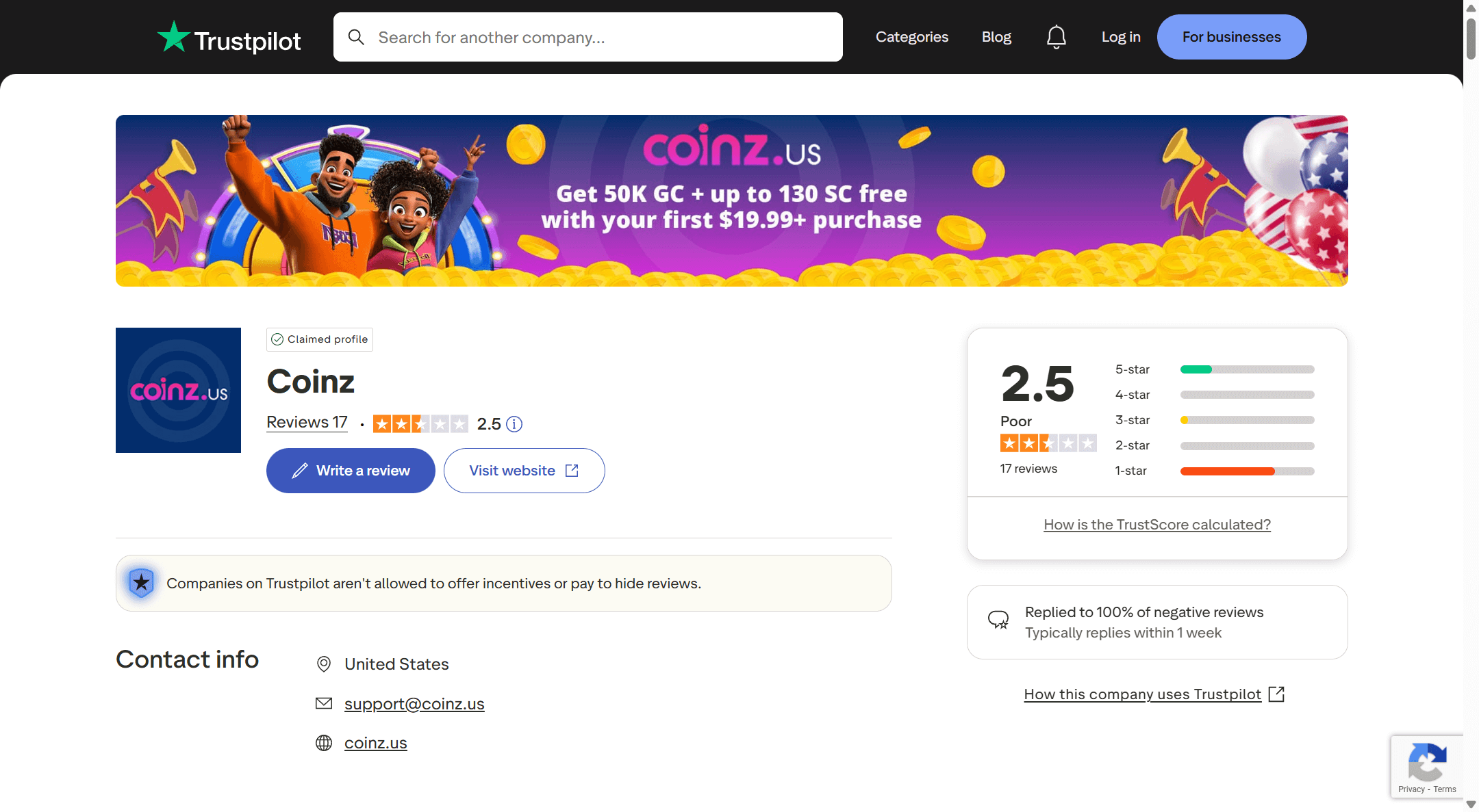 Coinz.us does not currently lean heavily into offsite community hubs like Discord, which some players might miss if they are used to more tight knit chat environments. Even so, the combination of live chat, races, and social media activity makes the platform feel more vibrant than many new sweepstakes sites that barely acknowledge their player base once you register.