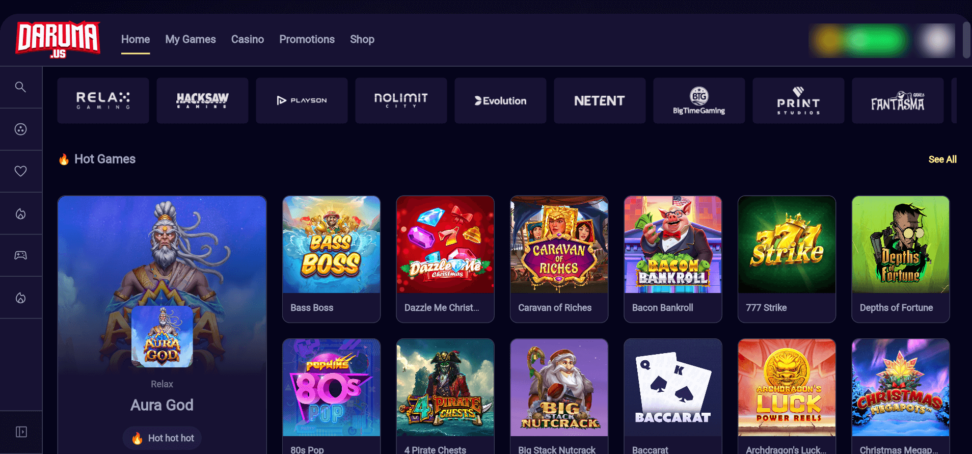 My hands-on experience with Daruma.us revealed a platform that understands game quality but hasn't yet mastered player engagement beyond pure gameplay. The moment I logged in and browsed the lobby, I appreciated the curated selection, finding Big Time Gaming's Bonanza Megaways sitting alongside Hacksaw Gaming's Wanted Dead or a Wild felt like discovering a hidden gem rather than wading through hundreds of filler titles.