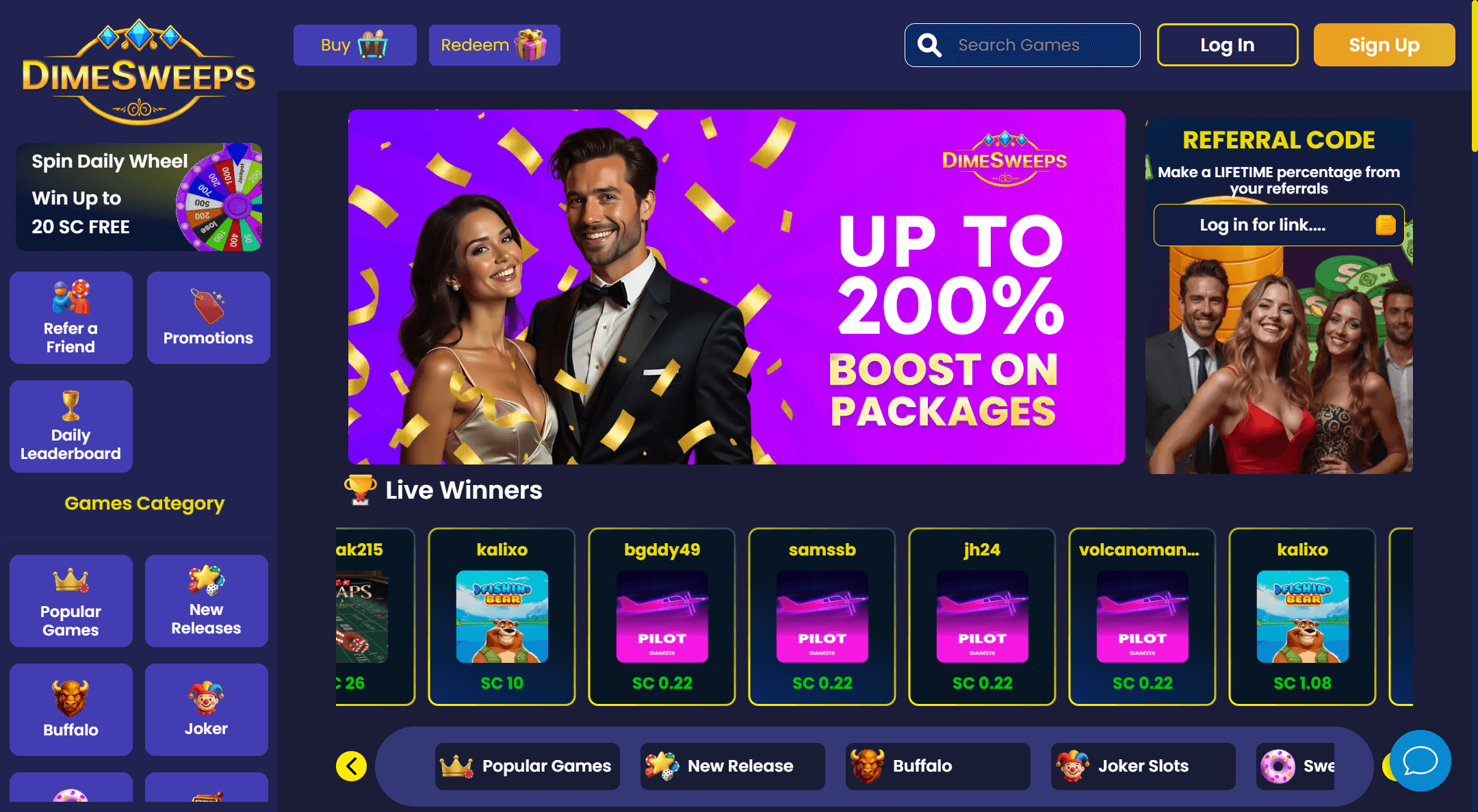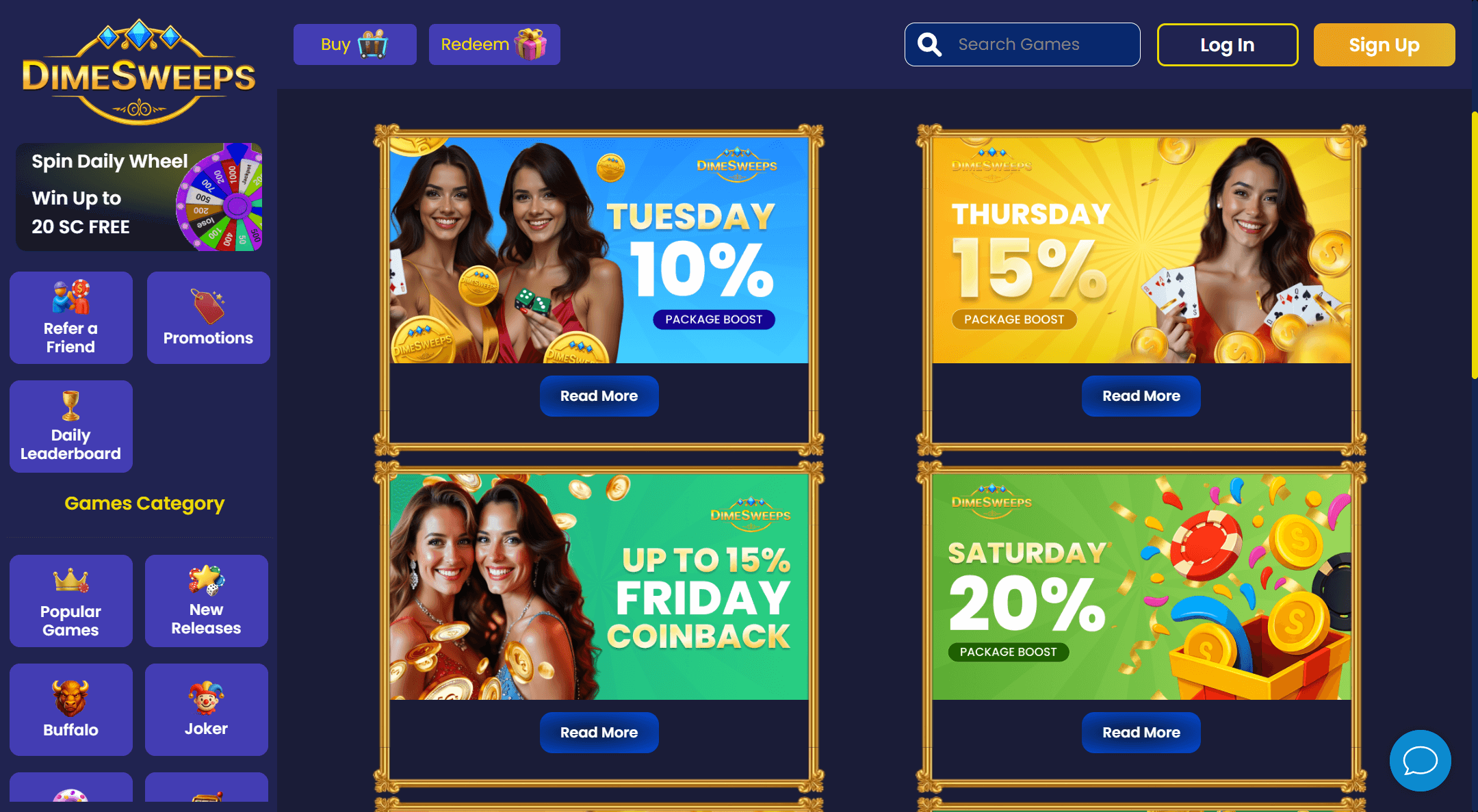 Thereâs a visible push for communal interaction, but not quite the depth seen on major rivals. DimeSweeps maintains daily bonus drops, public tournaments, and leaderboards, but lacks a Discord or Telegram group. The referral program packs real value if youâre able to pull in new signups actively, and the mail-in SC bonus caters to retro sweepers. Community events are limited, but thereâs promise if player numbers keep climbing.