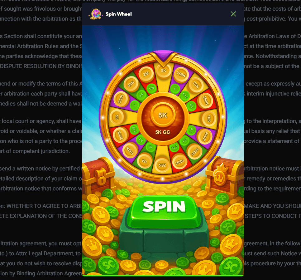 | Daily reward features (Spin Wheel up to 2M Gold Coins and 10 Sweeps Coin) | Varies by promo. Sweeps Coin freebies typically need to be played at least once before redemption eligibility. | Recurring. Timing can reset daily. | Often linked to a daily action like log-in or a spin wheel. | Redemptions depend on Sweeps Coin balance and eligibility. |