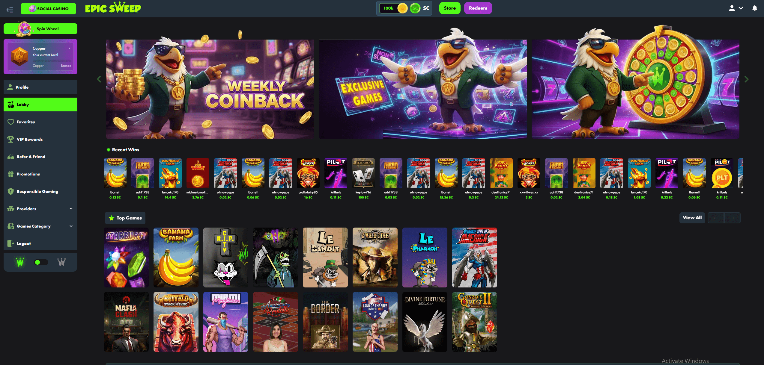 EPIC SWEEP CASINO REVIEW 2025 , VIP COINBACK, BIG PROVIDERS, AND A CLEAN REDEMPTION FLOW