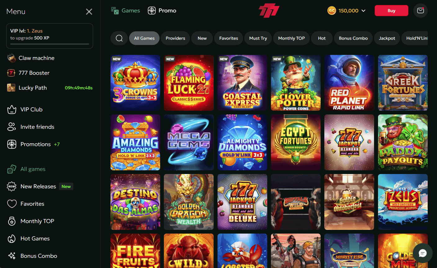 | Promotional wheels (Lucky Path, 777 Booster) | Time-limited spins awarding GC, SC, gems, or bonus features. | Bonus SC from wheels follows redemption cap logic tied to deposits. | Hourly/daily spin windows; timers visible in lobby. | Slots-only, sometimes tied to featured game campaigns. |