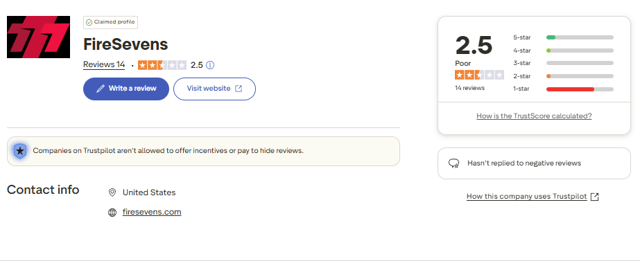 Player sentiment around Fire Sevens is decidedly negative on Trustpilot, with the platform aggregating 14+ reviews at the time of writing, many of which express frustration with redemption restrictions and payout delays. Key themes in feedback include: