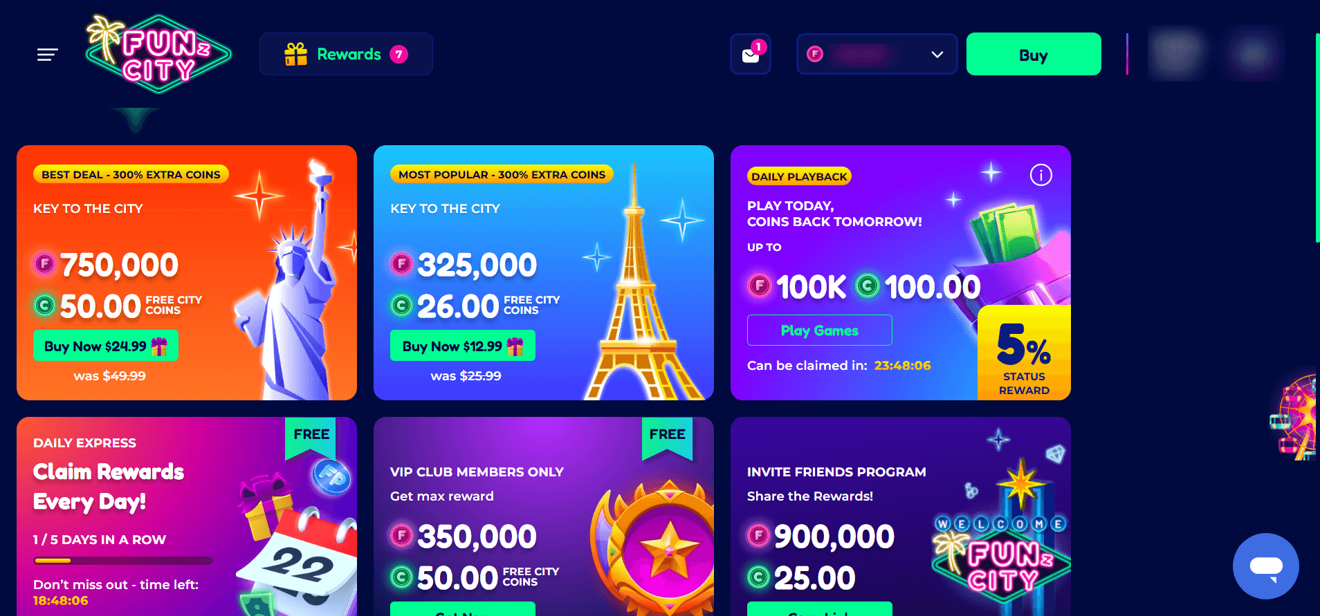 The bonus structure follows industry standards with Fun Coins serving as entertainment currency and City Coins functioning as redeemable sweepstakes entries. Time constraints are generous, with no strict expiration on the welcome coins, though I always recommend reviewing the full terms before committing to any purchase.