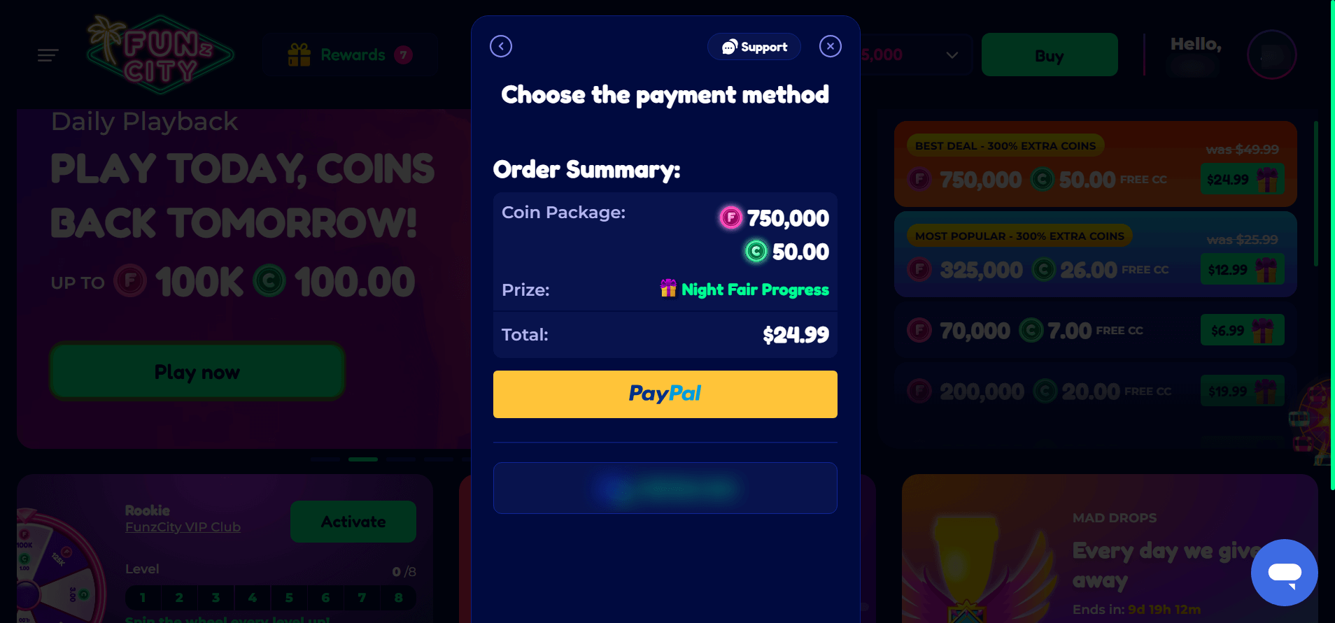 What genuinely impressed me was the first-purchase offer: 750,000 Fun Coins plus 50 free City Coins for $24.99, a discount from the regular $35 price point. This represents nearly 30% savings and positions new players with substantial playing power right from the start and truly surprised me as one of the best bang-for-your-buck packages out there. The 1x playthrough requirement on City Coins is refreshingly transparent compared to the complex rollover demands I've encountered at competing platforms.