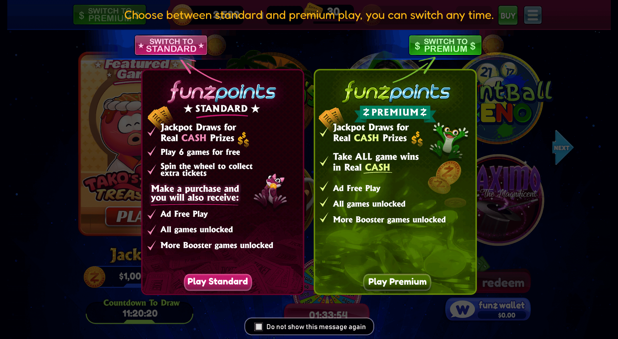 Free play is baked into the system by design, with Standard Funzpoints acting as a pure entertainment currency, so itās easy to treat this as a slots free games hub and only dip into Premium mode when you feel like chasing cash outs.