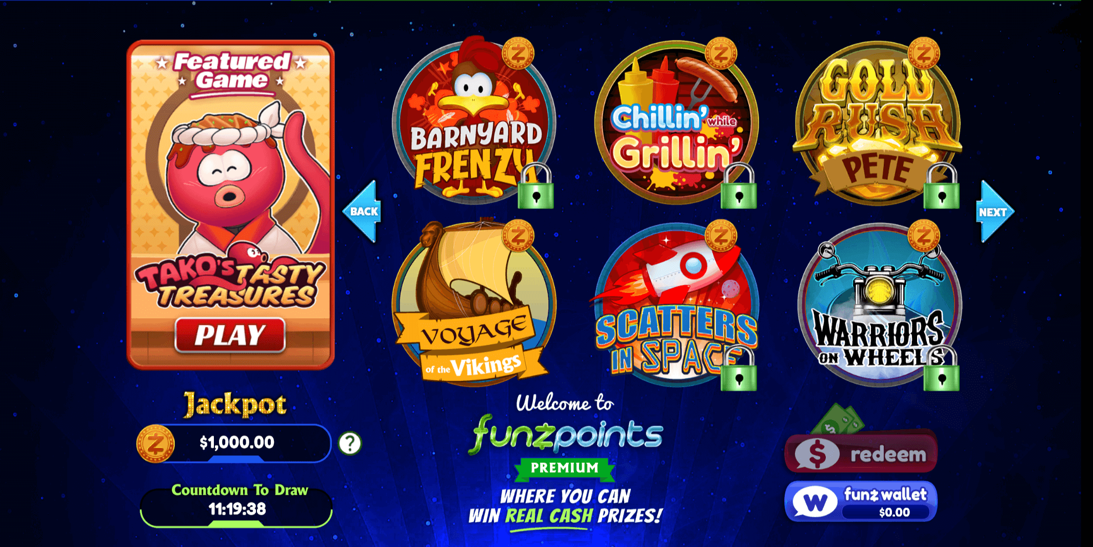 - Prize Currency, Premium Funzpoints, where 100 Premium FP equals $1 in redeemable cash value once you meet requirements.