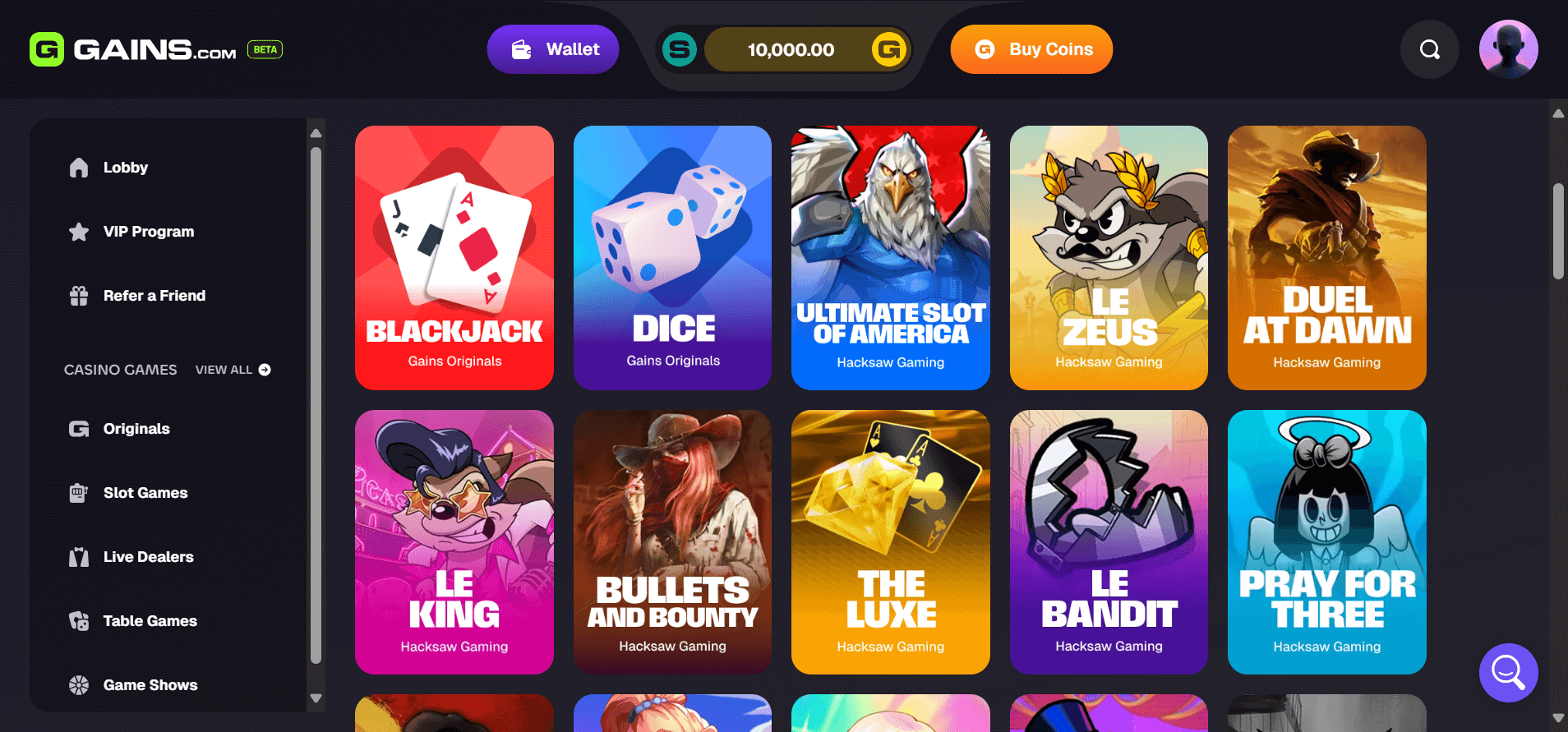 After a few weeks of regular play on Gains, I left with mixed feelings. The game library is outstanding for a free-to-play social casino, and I liked the low redemption minimums. But the bonus offers suffer from poor transparency, and the lack of lively chat/community features makes the experience less compelling for regulars. Additionally, the online criticism leveled at the company in the form of angry Trustpilot reviews left me skeptical and with a bad feeling in my stomach. In short, if games are your only concern, and you just want to play for free or small amounts then you're in the right placeâjust donât expect a true sweepstakes casino vibe.