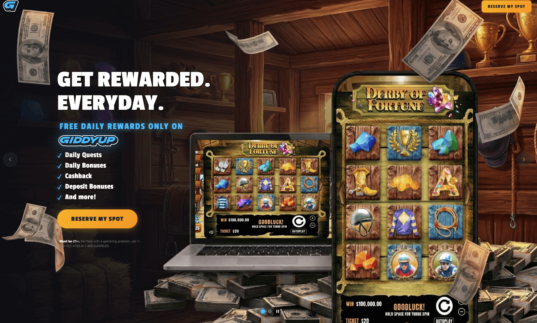 This legal framework is notably different from the sweepstakes social casino model: GiddyUp is not dual-currency or promotion-based, it is a licensed real-money gambling product, and the 21+ age requirement (rather than the standard 18+ at sweeps sites) reflects this. At launch, the platform will be available in 17 US states including California and New York, two of the most populous states that are currently restricted for most traditional sweepstakes casinos. Always check local laws and GiddyUp's eligibility page before registering, as ADW regulations vary by state.