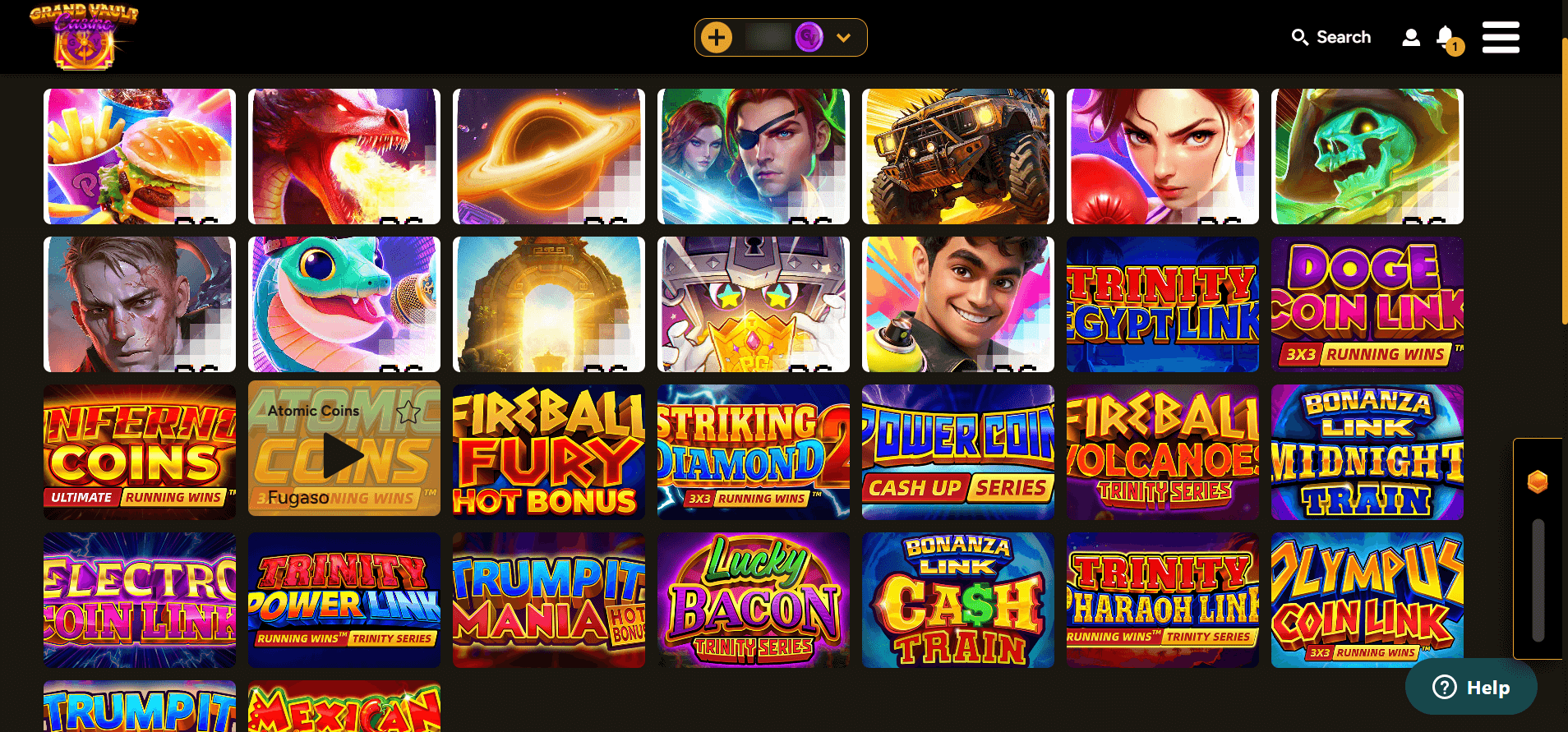 Currencies: Industry-standard dual wallet: Gold Coins for entertainment, GrandVault Coins (SC) for sweepstakes play and cash-out eligibility.
