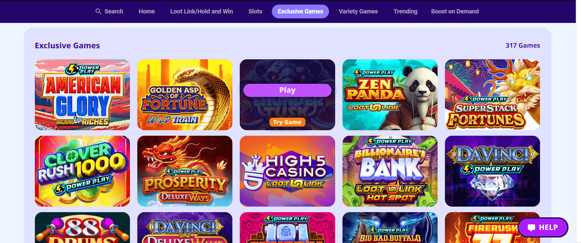 If online casino games with real money energy is your thing, 1,700â2,000+ slots and table games (based on state) await. Hundreds of exclusives, high RTPs (94â98%), 17+ live dealer rooms, frequent pop-up tournaments, and fan-favorite High5 Originals fill the roster. I was able to demo-play everything with GC before risking SC, and tournaments made trying new titles a breeze.