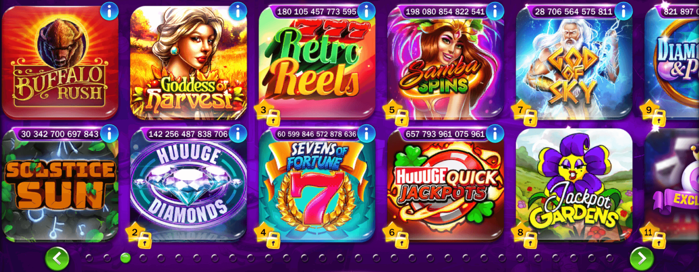 Huuuge's library centers on around 100-200 slots like Retro Reels, God of Sky, and Goddess of Harvest, with a small but serviceable selection of RNG table games including blackjack, video poker, roulette, and baccarat. No live dealers, crash games, or originals—focus stays on classic slots with hold-and-win styles, but graphics appear blurry and outdated. Providers remain in-house or unbranded.