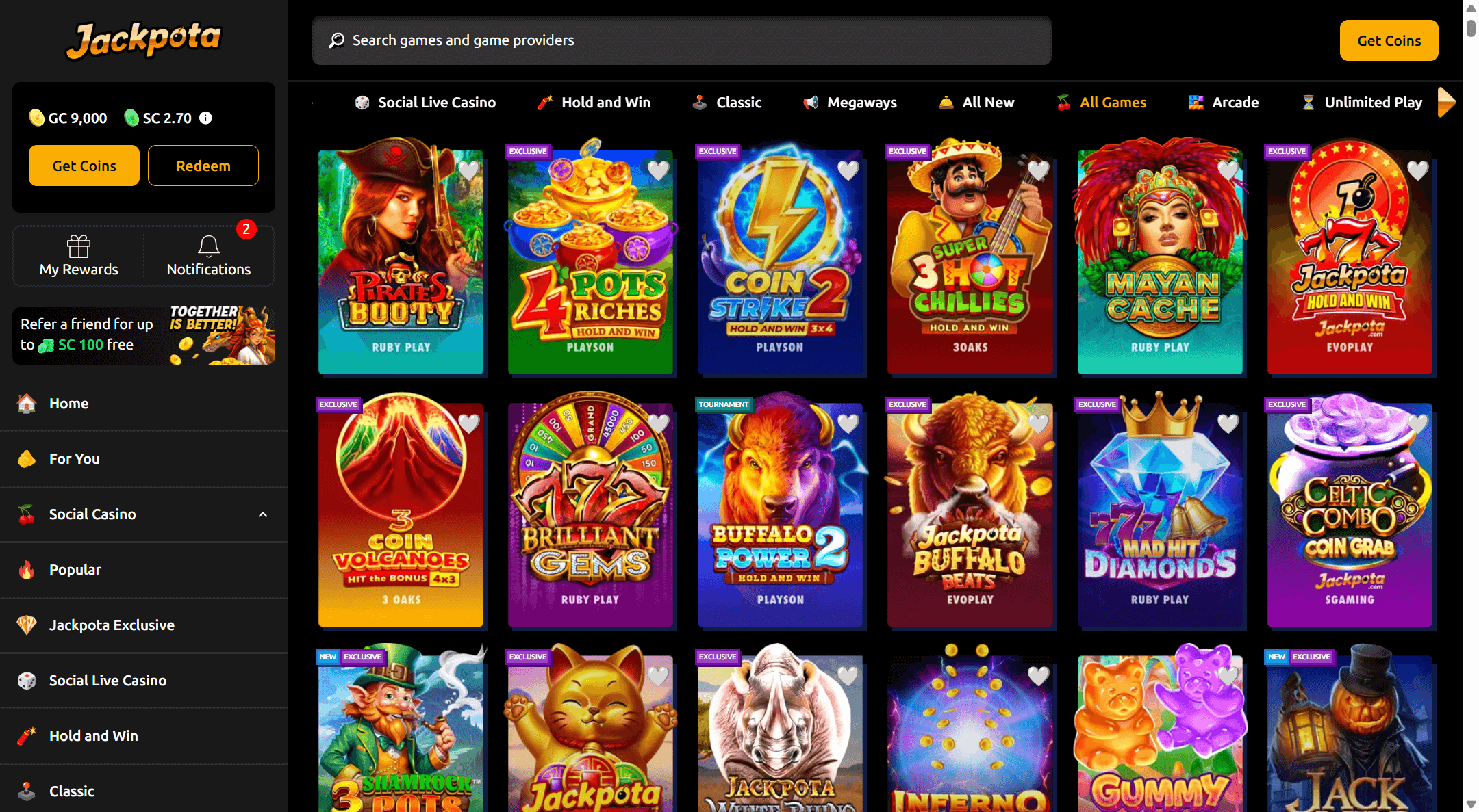 No-nonsense signup, tons of free coin launches, and a real focus on MegaWays, progressives, and âHold & Winâ kept me spinning for a good amount of time. Redemptions landed in my email in under 2 days and tournaments never stopped. While Iâd love a robust VIP ladder, the steady bonuses and payout speed mean I keep coming back. So, all in all, for a sweepstakes that launched in 2024 I was quite impressed with everything they had to offer and I only expect more to come. For me, Jackpota is a lock for 2025.
