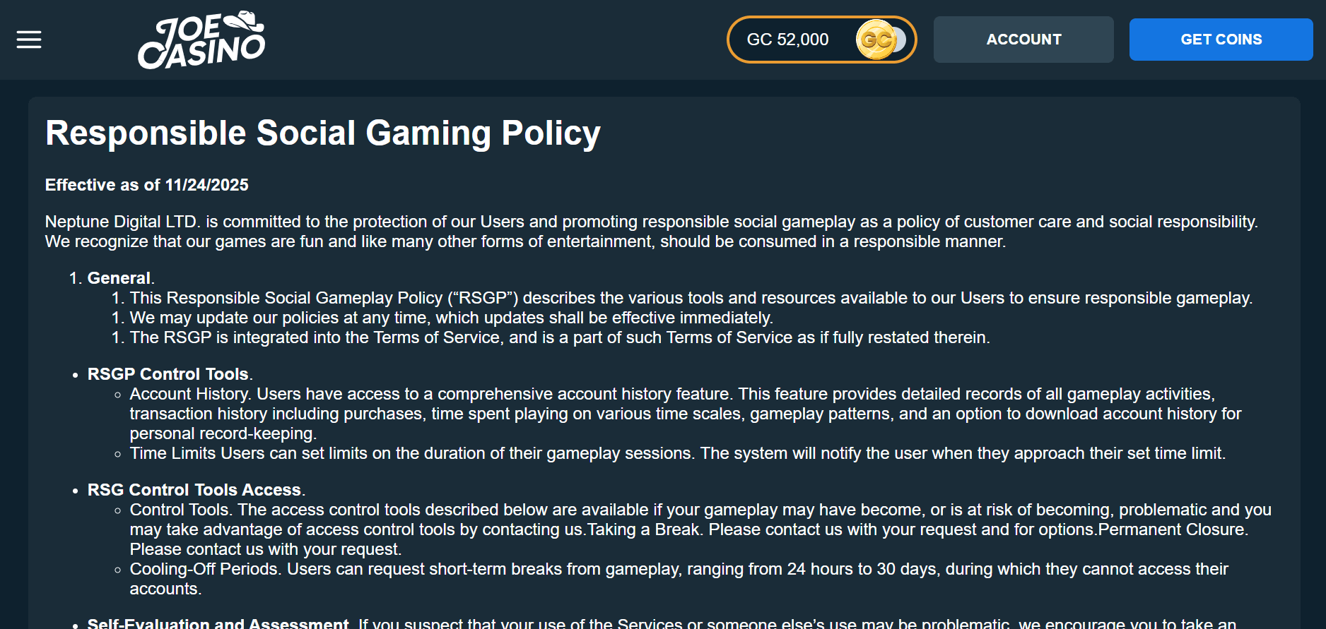 For players seeking robust community features and social gamification, the current offering feels sparse. The absence of these elements positions Joe Casino as a solitary gaming experience rather than a social platform.