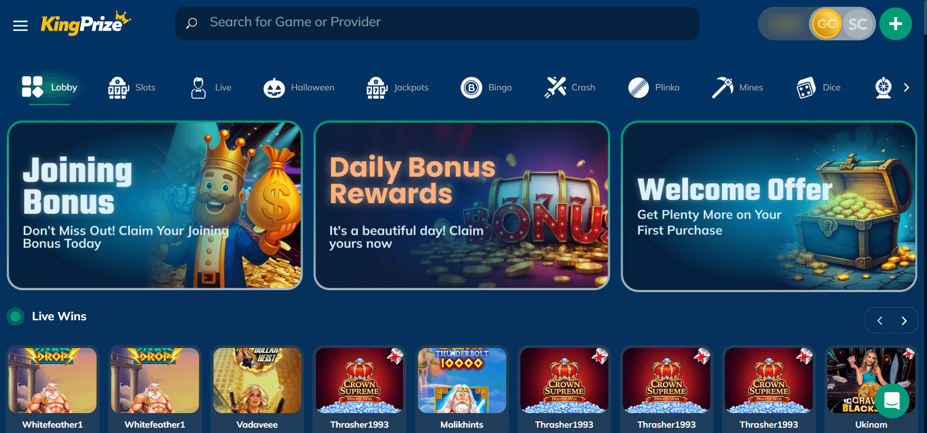 I am genuinely impressed with the game catalogue on display at KingPrize. The platform is home to 3,000+ casino titles from 30+ respected and renowned game providers. In my experience playing on sweepstakes casinos this is one of the biggest game collections out there rivaling established platforms like Stake.us and McLuck. Ultimately, I think instead of asking 'what games can you play on KingPrize' a better question would be 'what games CAN'T you play on KingPrize'.