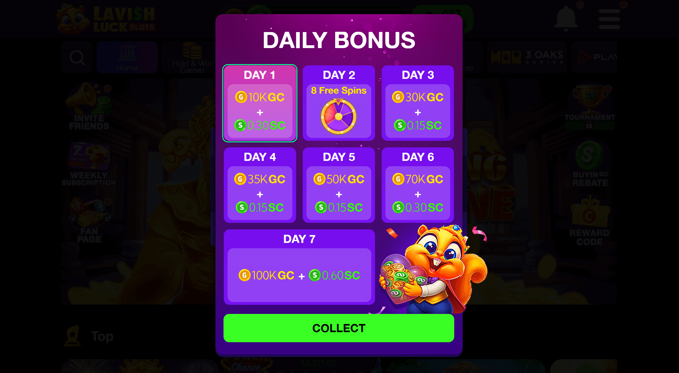 Free play is tightly woven into Lavish Luck’s identity, and I regularly used Gold Coins and daily free spins to explore new releases without touching my Sweeps balance. This combination of social incentives, frequent spins, and the ability to test mechanics before committing SC makes the platform particularly friendly if you like experimenting with new slots rather than sticking to one or two favorites.