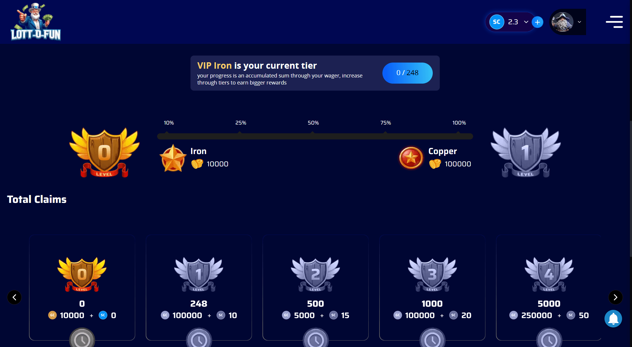 On the plus side , there is a form of VIP style progression tied to activity and SC play that can unlock level up rewards , extra spins , and occasional Gold Coin top ups. It is not as detailed as the tiered programs you find at more established rivals like Sixty6 Social Casino, but it is at least something to aim for if you decide to stick around.