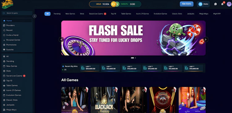 Much like all the best sweepstakes casinos free play is available across all titles using Gold Coins, but the inflated stake requirements undermine this feature's value. SC play offers more reasonable 0.1 SC minimum bets, making sweepstakes mode the only practical way to explore the library without burning through your balance in minutes.