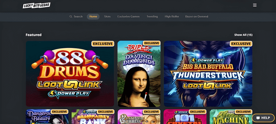 Slot Selection: The backbone of Lucky Bits Vegas is its extensive slot collection featuring providers like Pragmatic Play, High 5 Games, Lucky Bits proprietary titles, B Gaming (Softswiss), and M2Play (Microgaming). During my testing, I was drawn to the Big Bass Bonanza series, which includes rare variants like Bigger Bass Splash, Big Bass Christmas Bash, and Big Bass Bonanza 3 Reeler. The platform hosts over 200 exclusive games including Big Bad Buffalo, Billionaire's Bank, and Majestic Cats that provide unique experiences unavailable elsewhere.