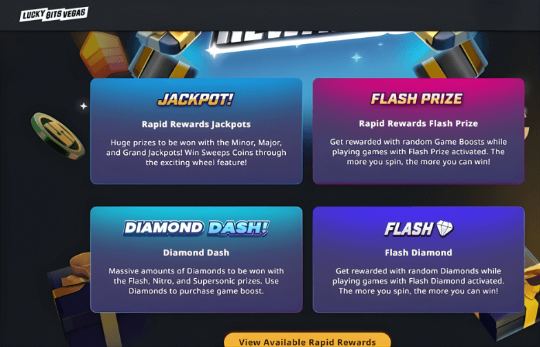 Sportsbook: Lucky Bits Vegas does not currently offer sports betting functionality. If you're seeking a sweepstakes casino with integrated sportsbook features, consider exploring alternatives that combine casino games with sports wagering options.