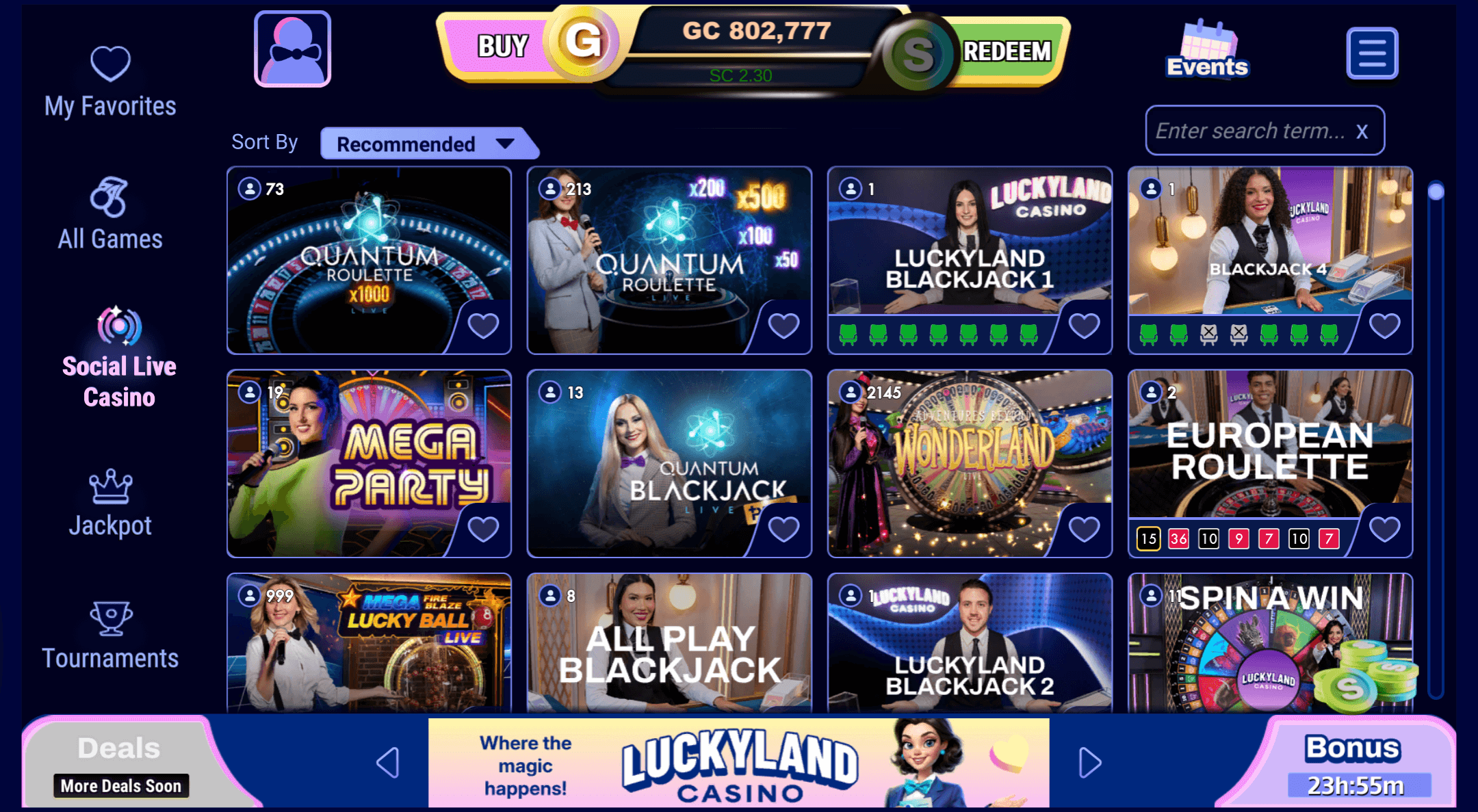 There are no live dealer tables and no real sportsbook here, so if you want blackjack, roulette, or sports markets alongside your slots machine casino play, you will probably find the library limited compared with alternatives like Sweep Jungle Casino that cover more verticals. That said, the exclusive and proprietary style slots give Lucky Land a distinct personality, and the game performance on both desktop and mobile browser felt stable during longer sessions.
