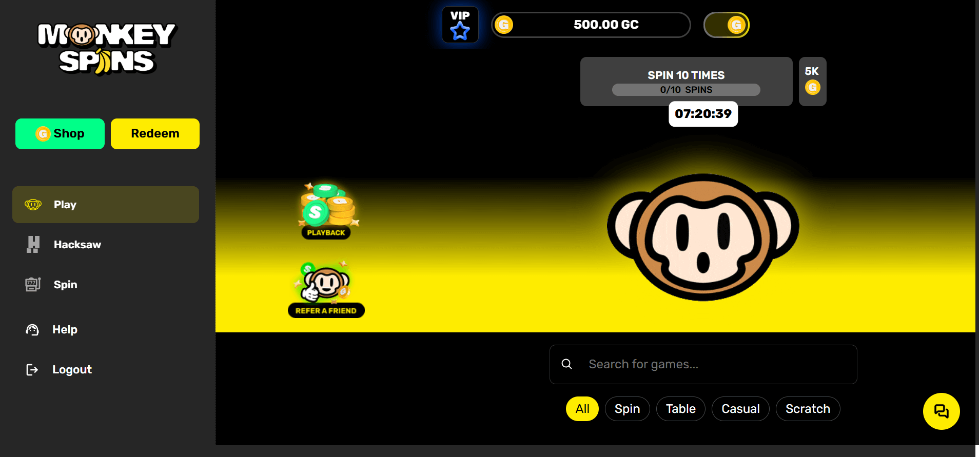 Monkey Spins arrived on the sweepstakes casino scene with modest fanfare, and after spending considerable time exploring their platform, I can see why the reception has been lukewarm. What this casino does offer is a straightforward gaming experience with 500+ titles and a decent welcome bonus structure, but the lack of ongoing promotions and a true social vibe leave much to be desired for players seeking long-term value.