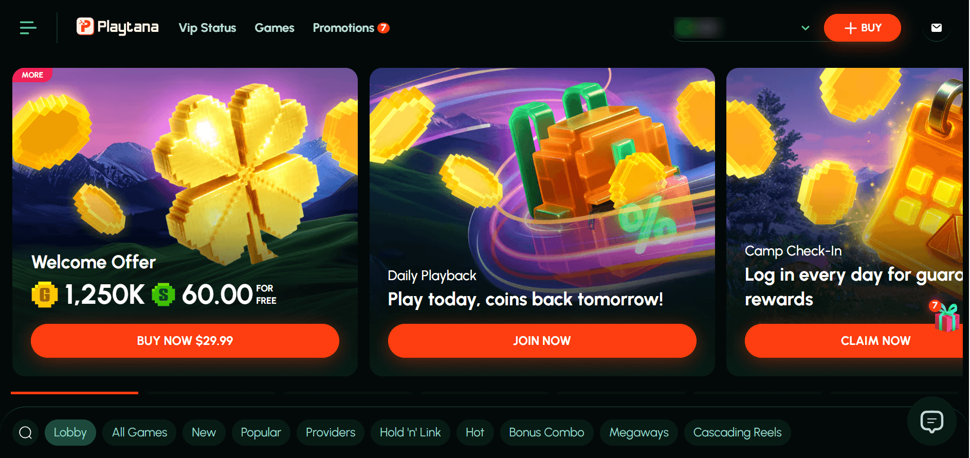 Redemption details at Playtana are among the most opaque I've encountered reviewing sweepstakes casinos. While third-party sources indicate the platform offers Sweeps Coins redemptions, the official site provides no clear information about minimum redemption thresholds, processing times, or available payout methods. This is a critical oversight, redemption transparency is fundamental to player trust, and the absence of published policies makes me question whether the platform is prepared to handle cash prize requests efficiently.