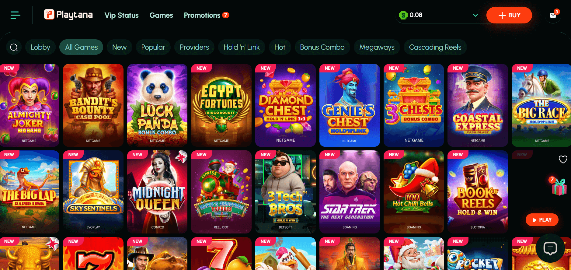 During my testing period on the platform, I encountered a selection of free slots play options that covered standard themes and mechanics, but nothing particularly innovative or exclusive stood out. The absence of game counts is concerning, if Playtana had 500+ titles or partnerships with premium providers, you would expect them to advertise those numbers prominently. The silence suggests a smaller, less diverse catalog that may not satisfy players.