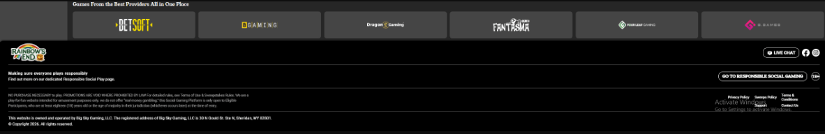 My Assessment: Rainbows End looks structurally compliant with the standard sweeps model and does invest in responsible gaming, but incomplete front-end information about redemptions and eligibility keeps it in the âcautiously okayâ bucket.