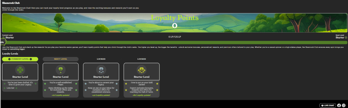 Compared with VIP setups that publish exact cashback percentages and tier perks, Shamrock Club feels aspirational rather than concrete, which makes it hard to see the benefit of committing to play here compared to sites like Sixty6 Casino that offer a truly rewarding VIP system.