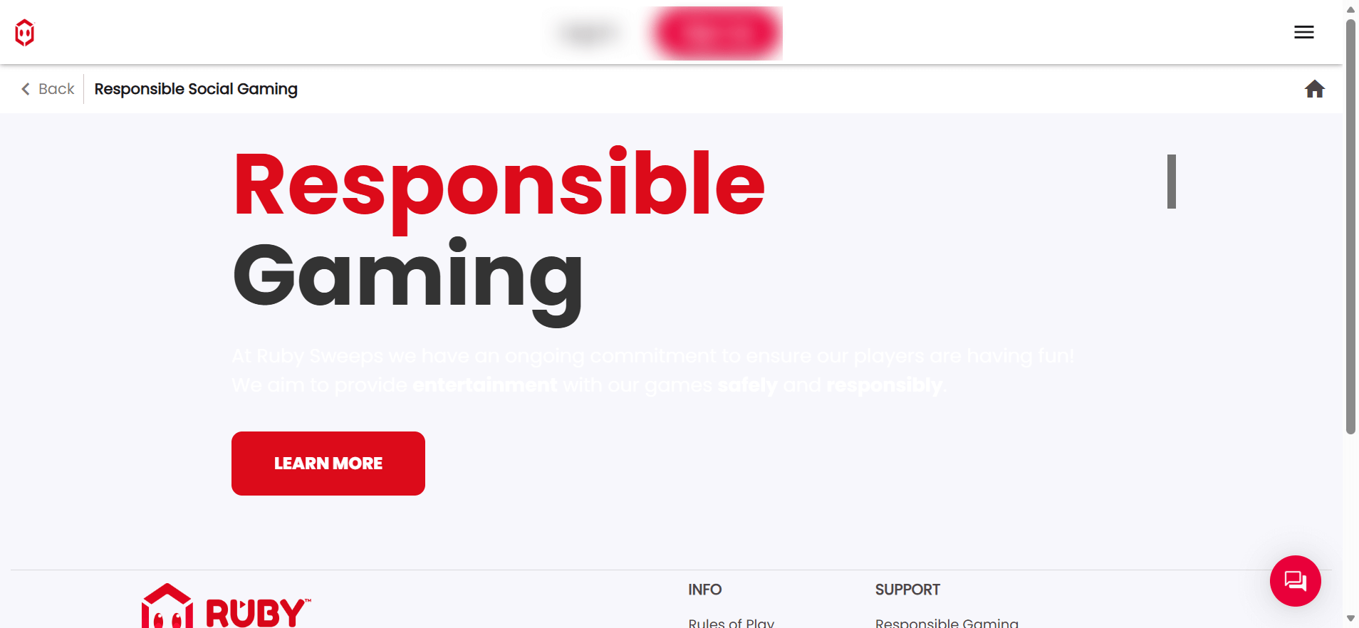 The responsible gaming implementation is insufficient compared to industry leaders and should be a priority for Ruby Sweeps moving forward.