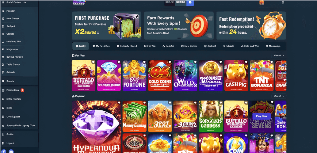 While a sweepstakes casino doesnât need thousands of games to feel strong, Sorcery Reels ends up feeling like itâs chasing breadth without depth. The lobby is sliced into many categories, but too many of those sections feel thin, which gives the overall experience an âempty shelfâ vibe rather than a focused selection. A tighter, more curated lineup, where each category has clearly handpicked standouts, would work much better, similar to how Smiles Casino structures its lobby around fewer, stronger choices instead of trying to cover every possible niche.