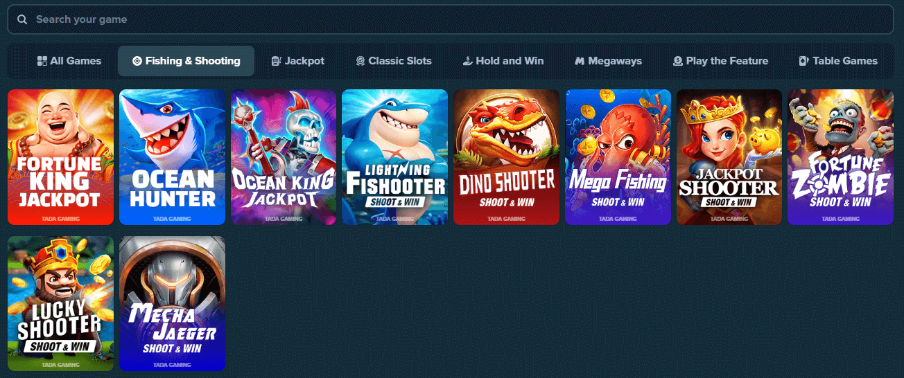 - Fishing & shooting: A short list of shooterâstyle games such as Fortune King Jackpot, Ocean Hunter, and Lightning Fish Shooter.