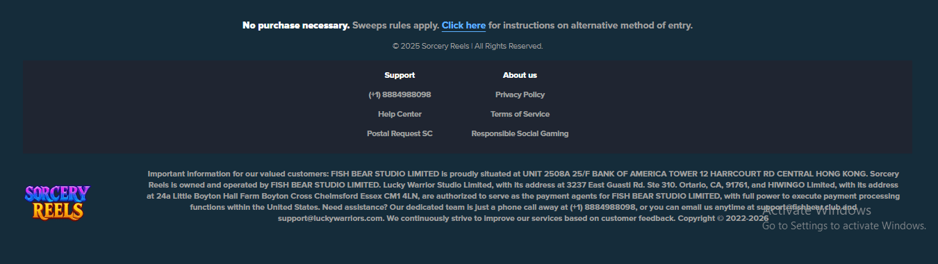 Sorcery Reels is the rebranded version of Spin Sorcery, a sweepstakes casino launched in 2025 and operated by Fish Bear Studio Limited. The site focuses on a bright, cartoon slot lobby with around 200 games, layered welcome bonuses, and quick bank-transfer redemptions when things go smoothly, but it also carries a low public rating and repeated complaints about blocked or slow cash-outs. This makes Sorcery Reels appealing mainly for casual slot fans who want to harvest promos, rather than serious SC grinders looking for a long-term main site.