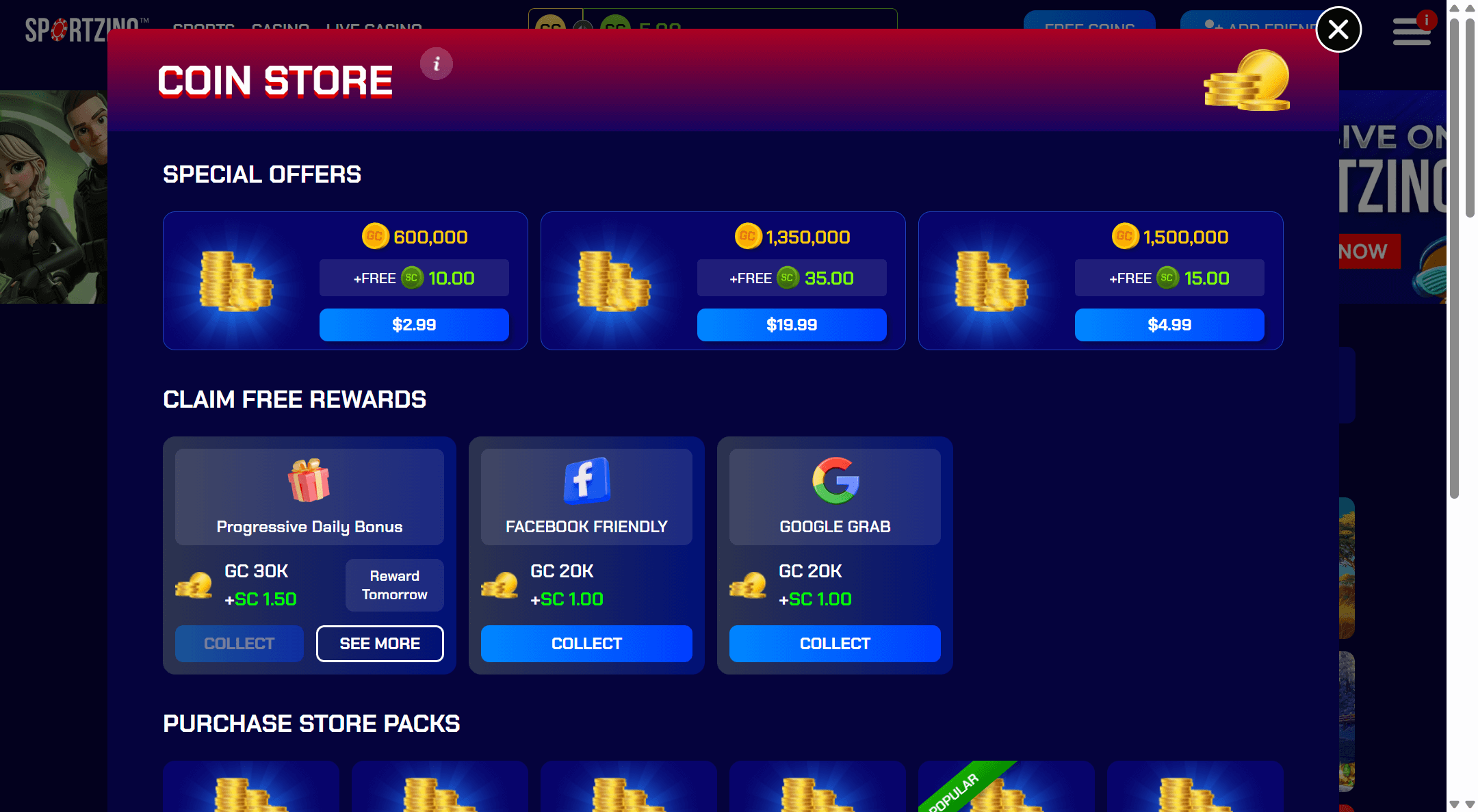 Sportzino has a wide variety of games that should suit all players. They offer a generous daily login bonus. Job well done!