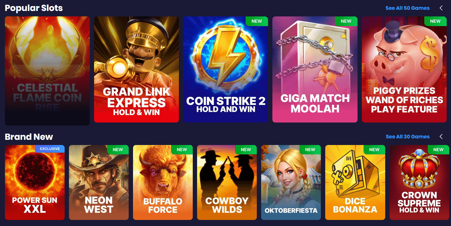 This is where Spree throws down the gauntlet: 1,500+ slots, dozens of Slingo and live dealer games, and regular new releases. My highlights: