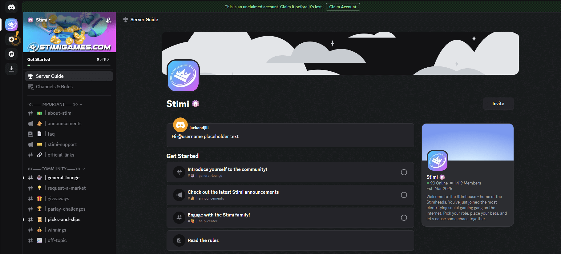 Stimi leans heavily into community via its Discord server, which doubles as both a support channel and a promo hub for giveaways and event-based Free Picks. The team also maintains an active Instagram presence where they announce big-event promos and share new promo codes, particularly around marquee games like the Super Bowl.