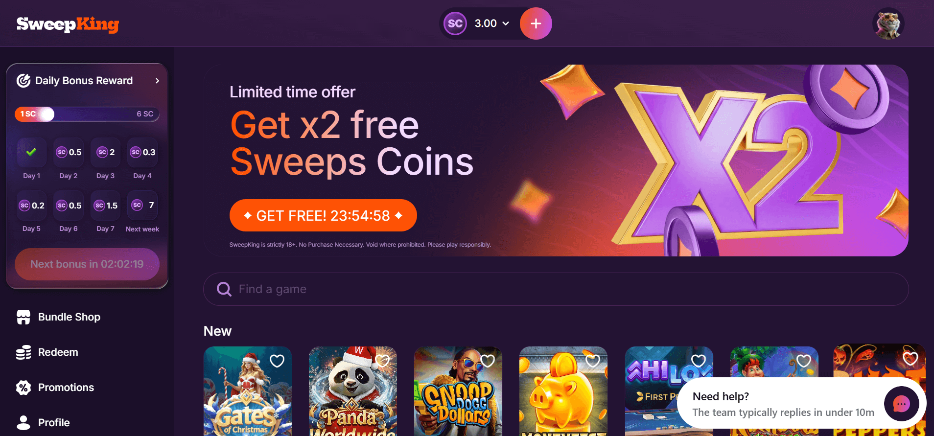 The free slots play experience at Sweep King centers around a growing collection of social casino games, though specific game counts remain undisclosed on their platform. I appreciated the clean lobby organization that makes navigation straightforward, even if the selection feels limited compared to industry leaders offering 1,000+ titles.