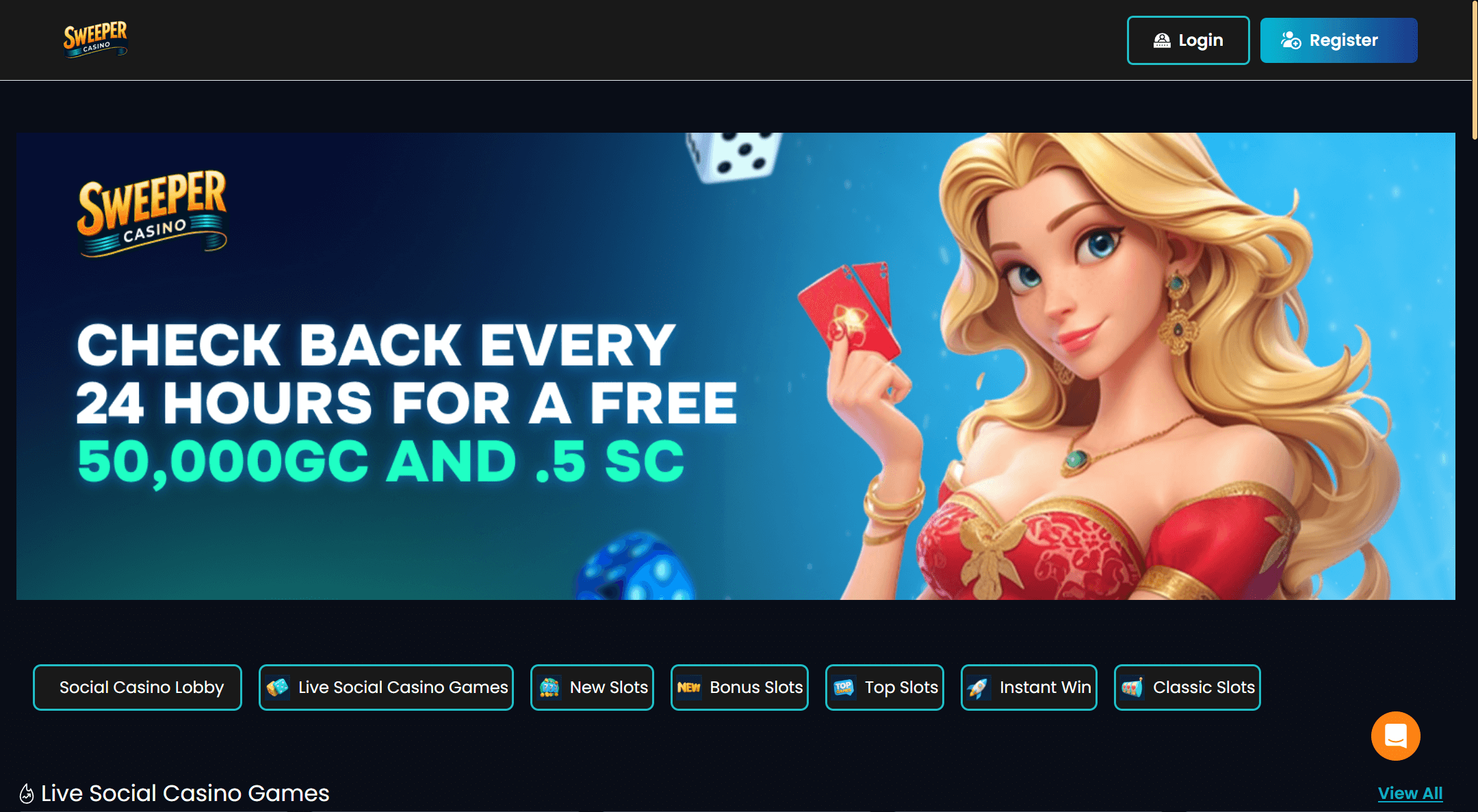 | Daily Login: 50,000 GC + 0.5 SC | Log in and click claim | 24h reset | All games | SC accrues to wallet, redeem at 50 min |